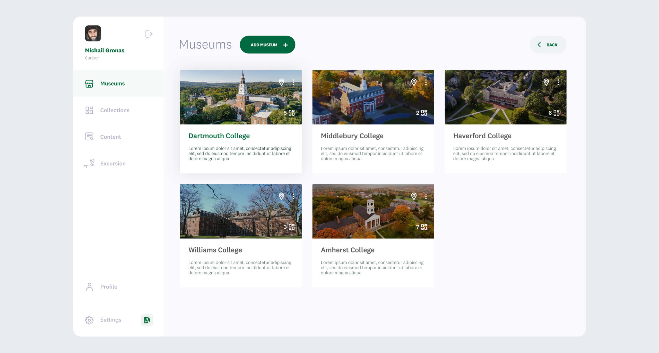Dartmouth College and the Hood Museum of Art needed a CRM system for curators to manage interactive elements for the Augmendo AR app.