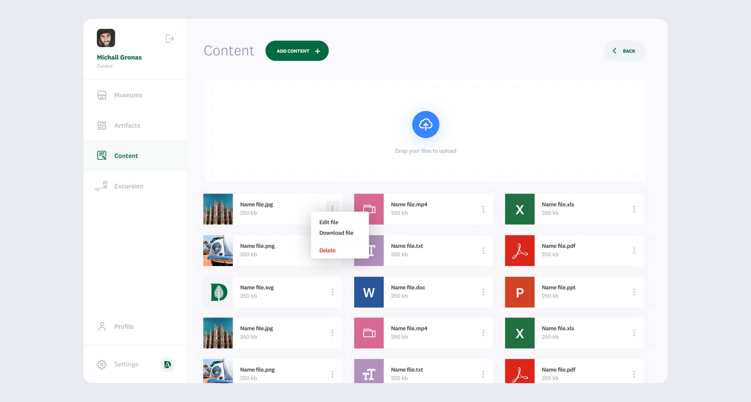 I designed the UX/UI for the CRM, creating over 50 screens for desktop and mobile, including an AR-tag editor for curators to add interactive tags to artwork. The system became a vital tool, helping curators and students enhance the interactive experience in the Augmendo app.