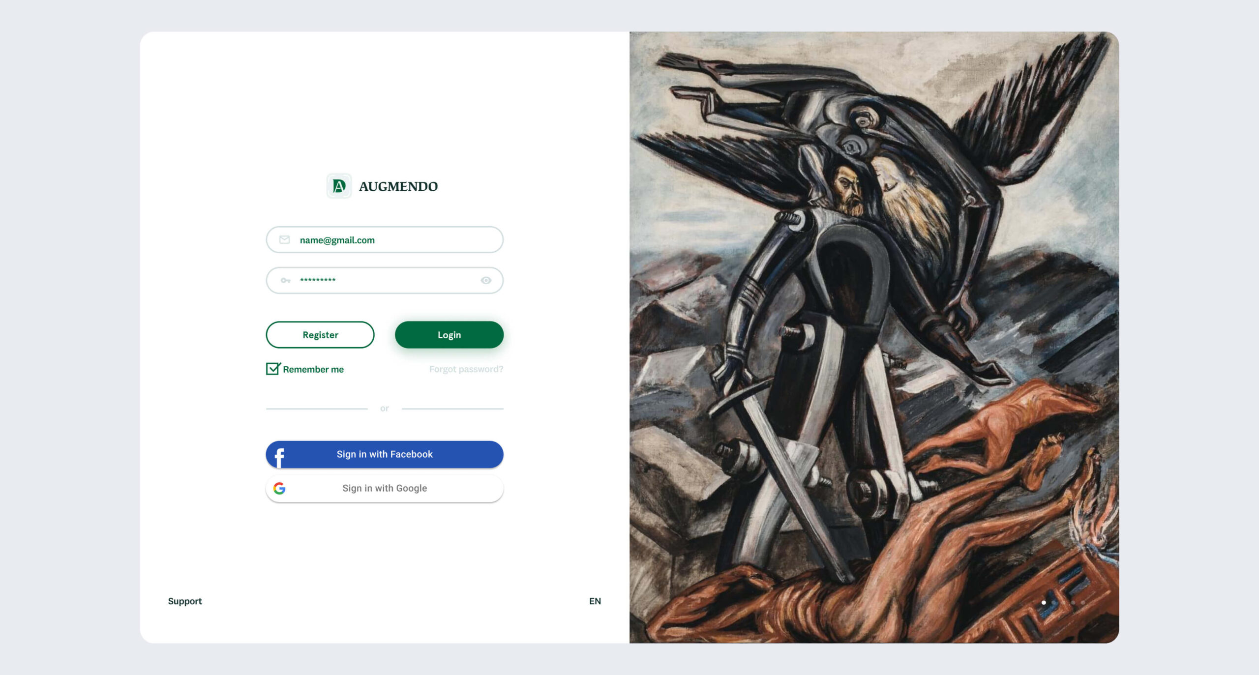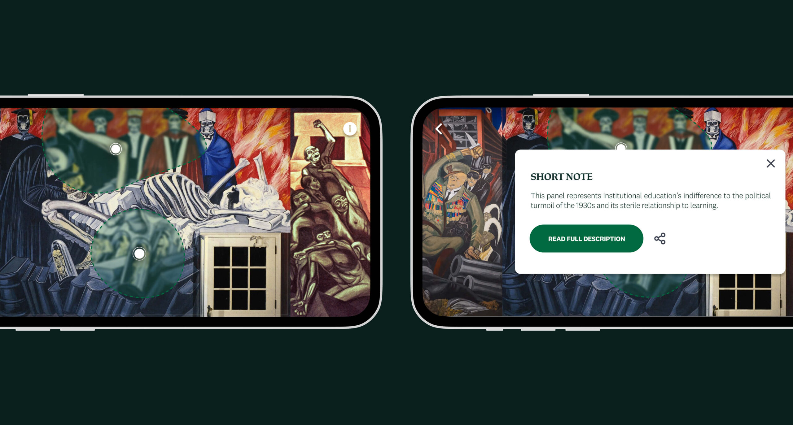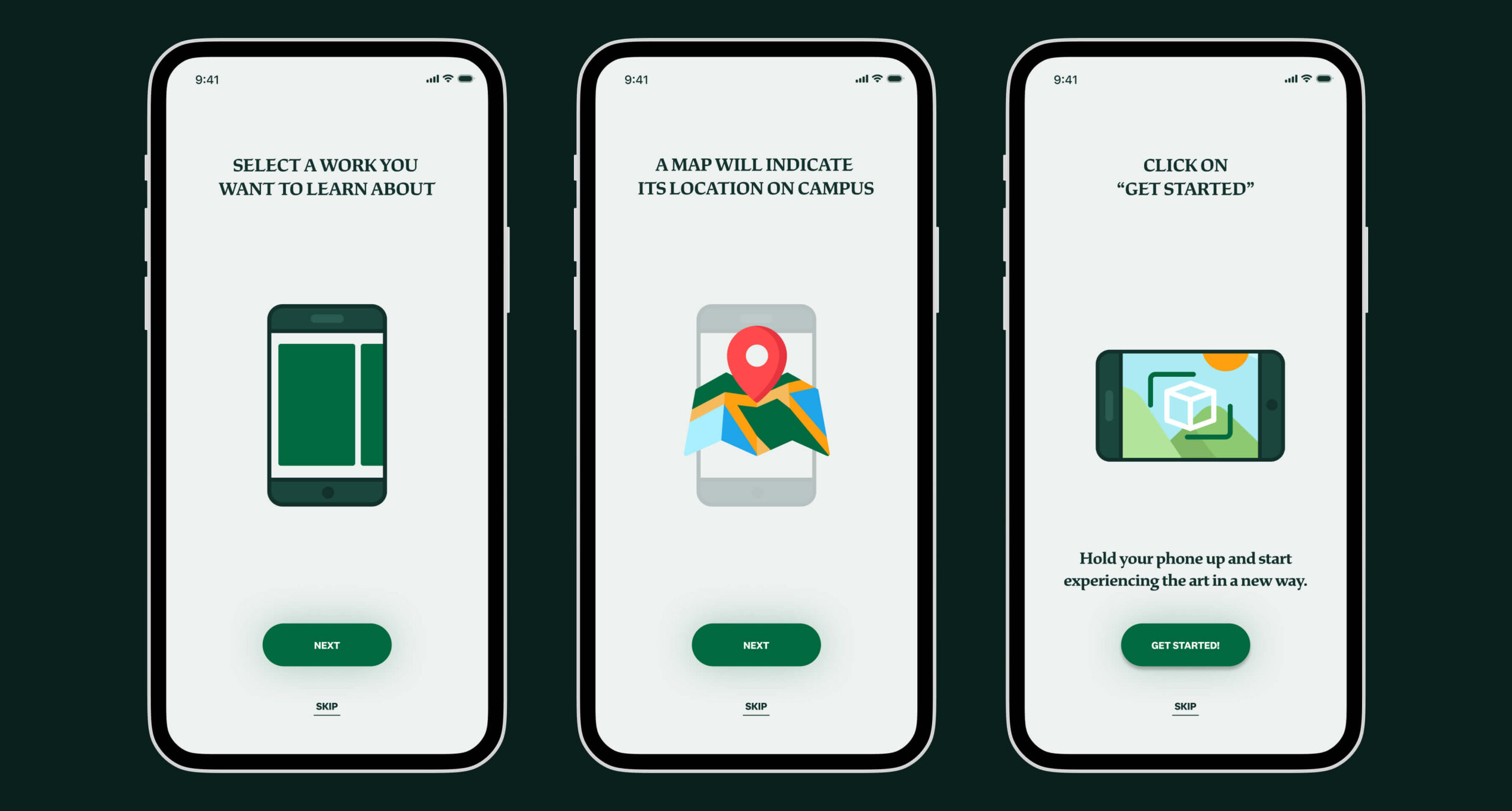 I worked on the branding and UX/UI design for the Augmendo App, an augmented reality tool that enhances the viewing experience of two key pieces of art at the college. I designed over 100 screens for the app, overall visual identity that aligned with Dartmouth’s brand. The app was a success, and there are plans to expand it to other artworks on campus and make it available to other museums.