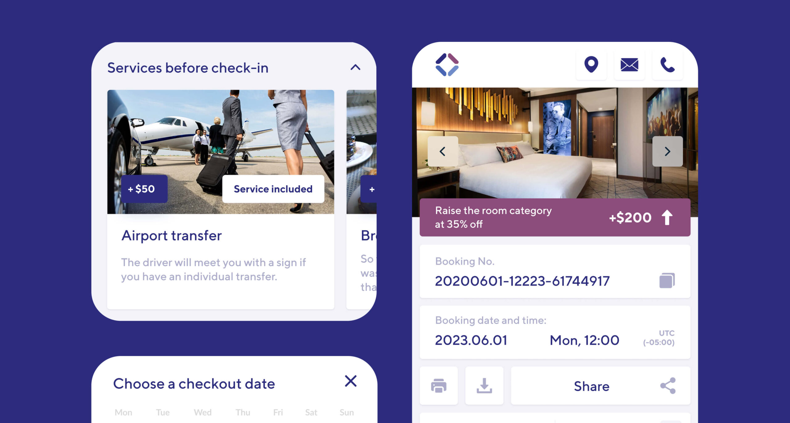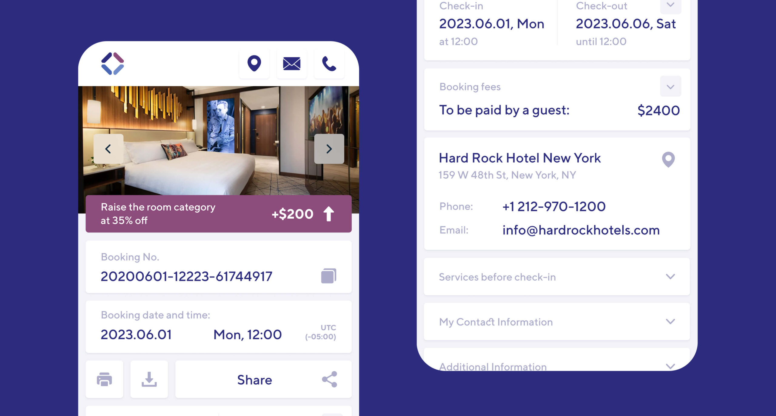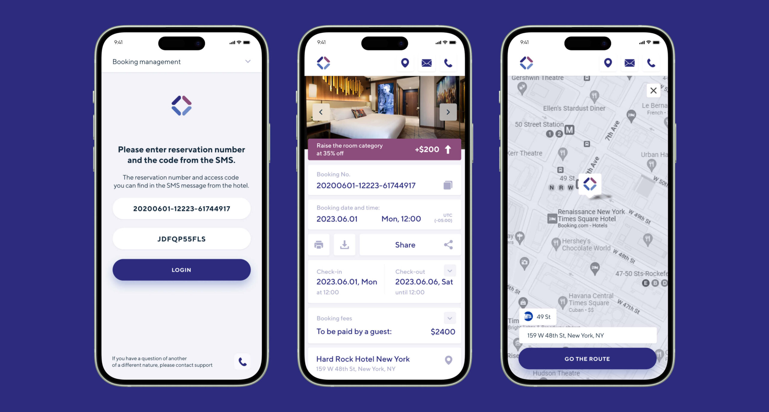 I designed the branding and UX/UI, creating a personal account with two modes: one for pre-check-in booking management and one for hotel interaction during the stay. The app features a flexible color scheme, an efficient layout, and intuitive icons, enhancing user experience and making it easy to navigate across devices.